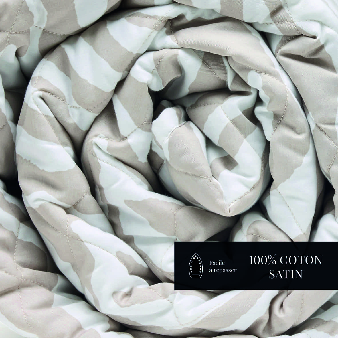 Couvre-lit satin de coton – Evasion zébrée Taupe – 220 x 250 cm
