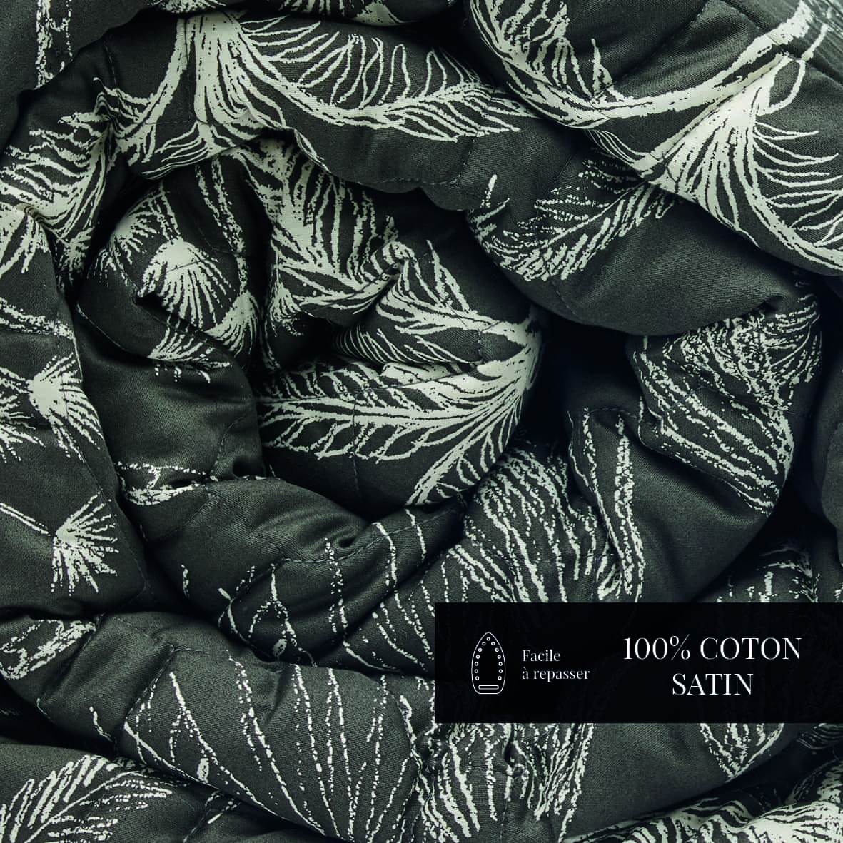 Couvre-lit satin de coton – Wild Noir – 220 x 250 cm