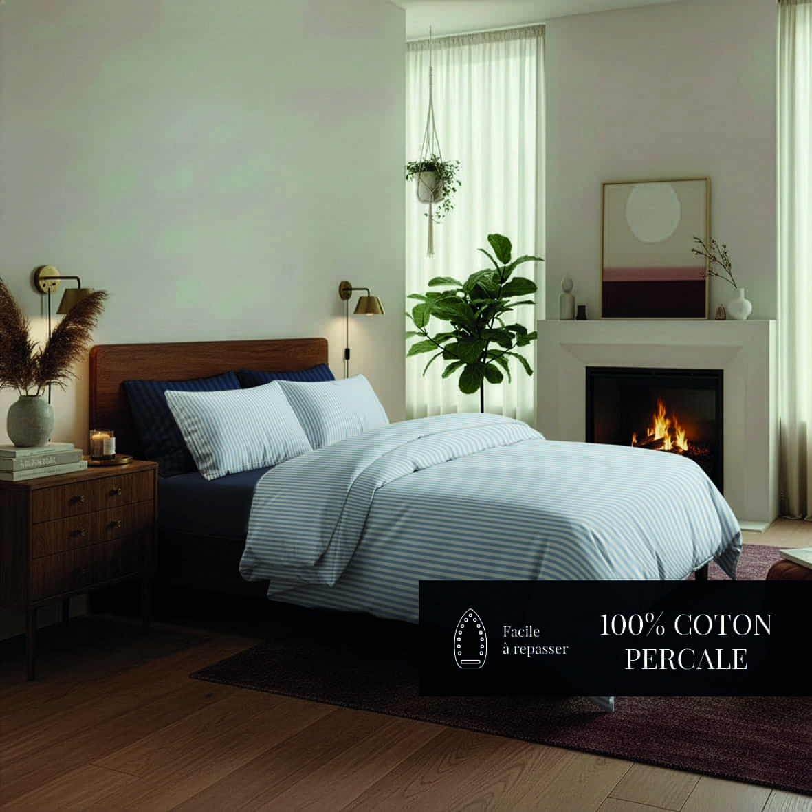 Ensemble de draps, 100% coton percale