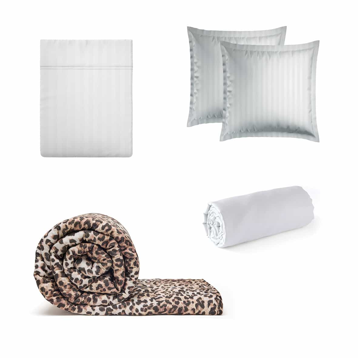 Soyez le premier à laisser votre avis sur “Ensemble de draps + couvre-lit de cotton satin – Dobby stripe woven / Fauve Blanc / Brun clair”