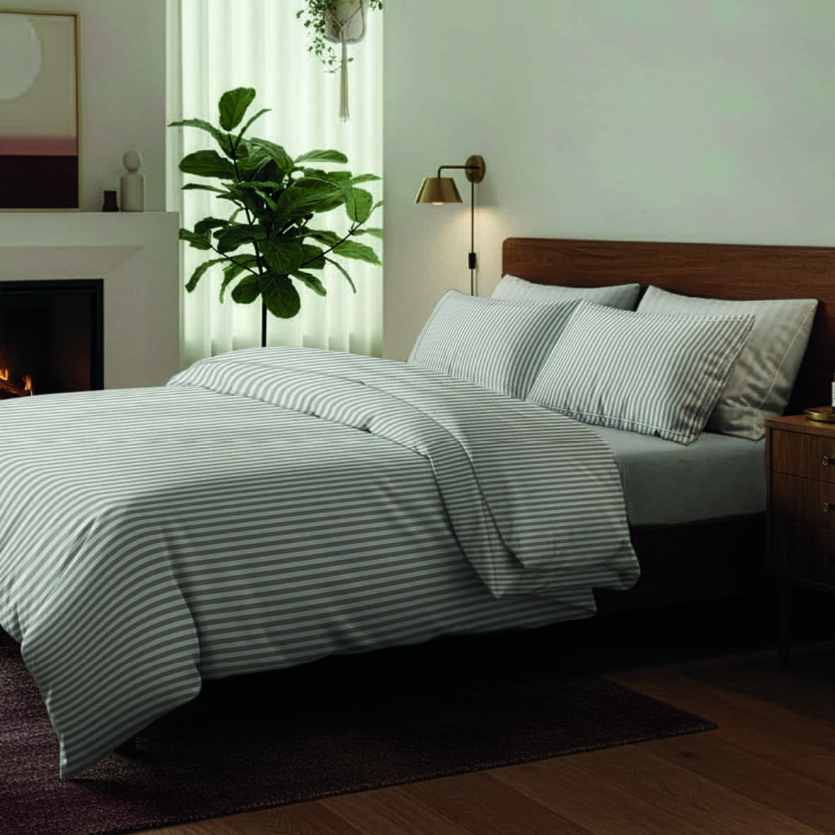 Notre linge de lit est confectionné avec le plus grand soin à partir de percale de coton haut de gamme. Son tissage serré offre un toucher lisse, frais et exceptionnellement doux, garantissant à la fois durabilité et élégance. Avec sa finition mate raffinée et sa nature respirante, ce linge de lit luxueux promet confort et sérénité pour des nuits paisibles.