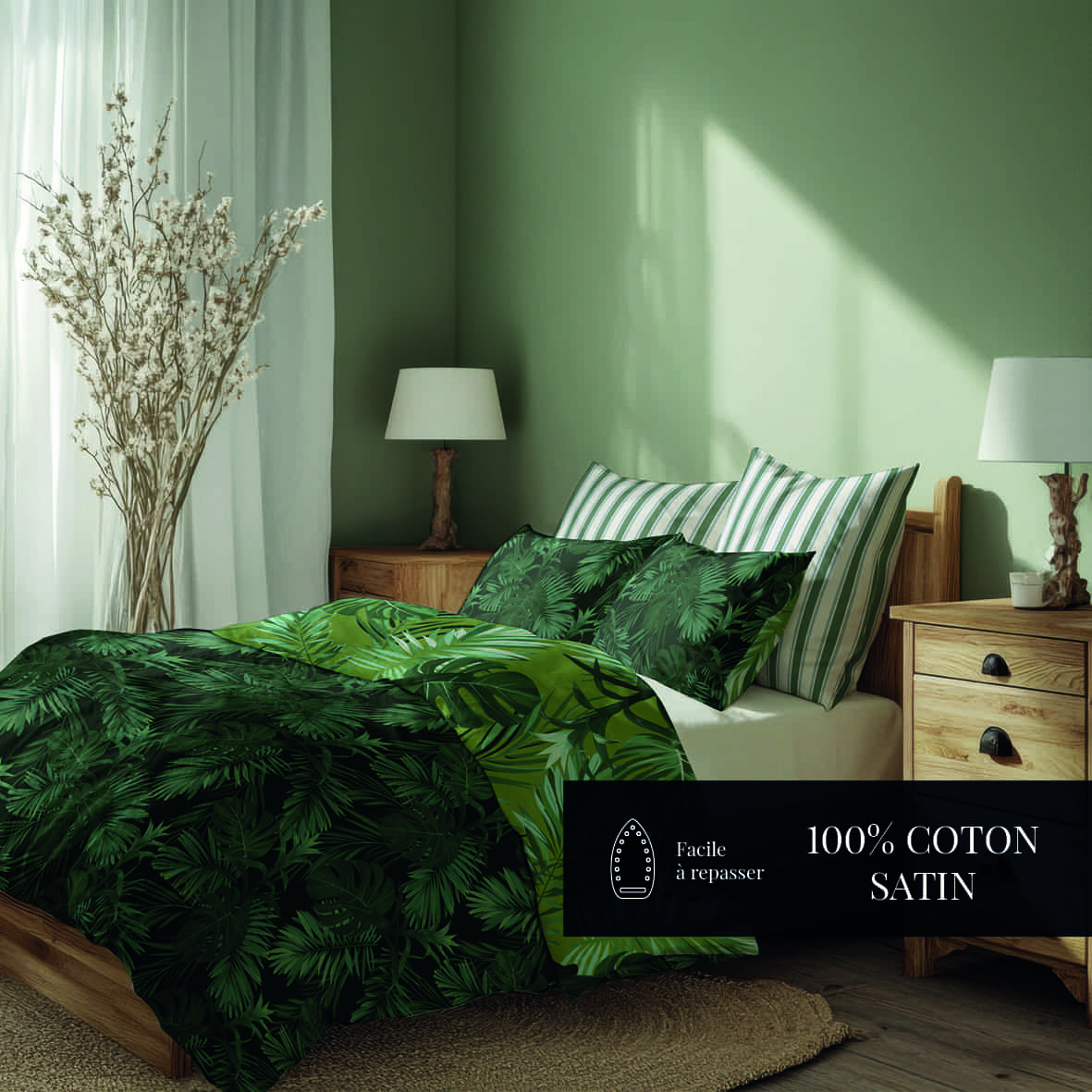 – Satin de coton haut de gamme : toucher soyeux, éclat subtil et grande douceur au quotidien