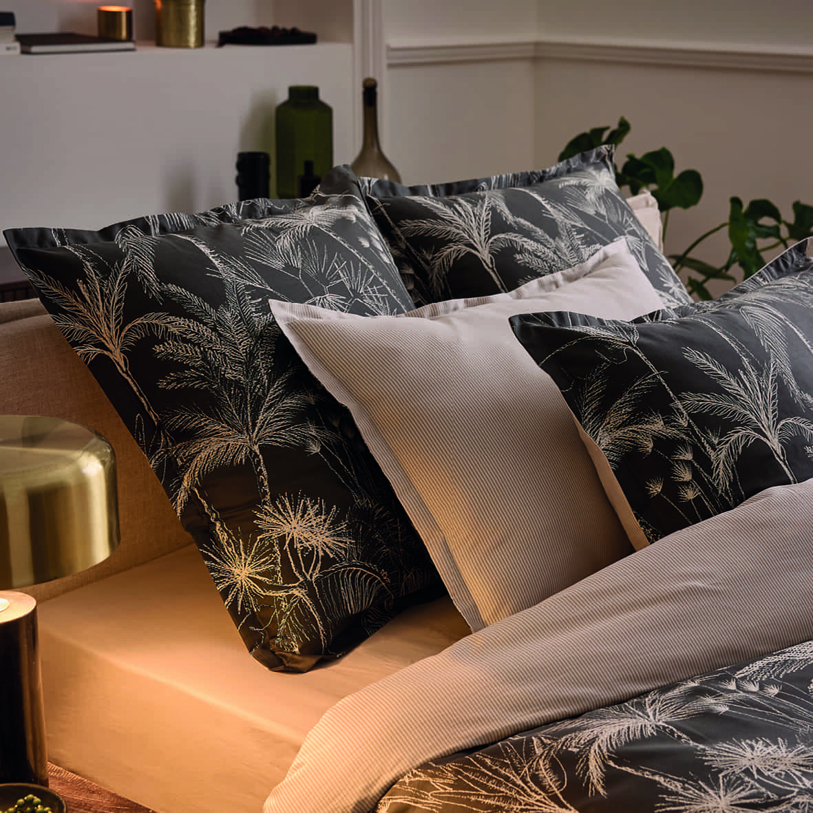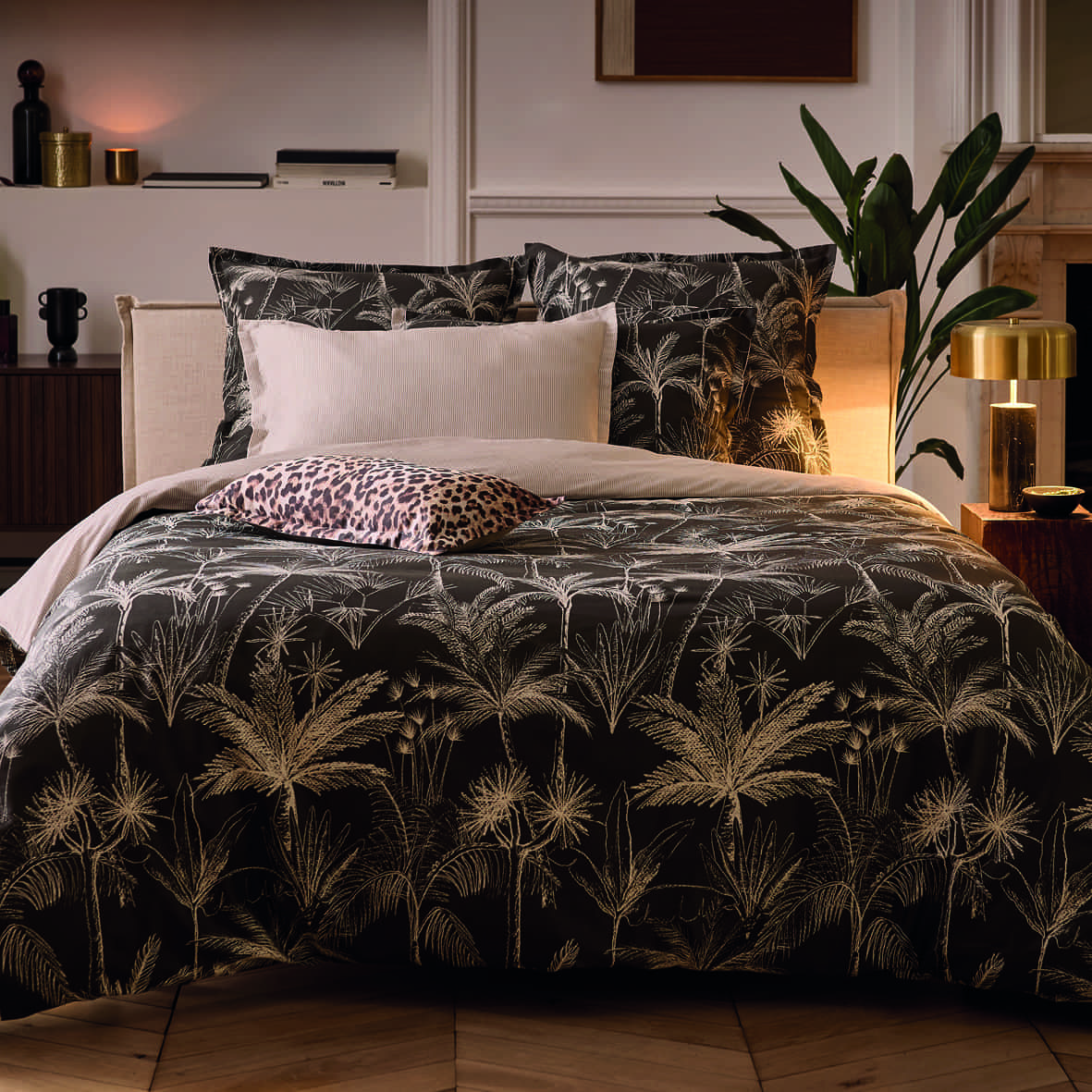 Housse de couette + taie d’oreiller satin de coton – Wild Noir – 240 x 220 cm + 2 x (63 x 63 cm)