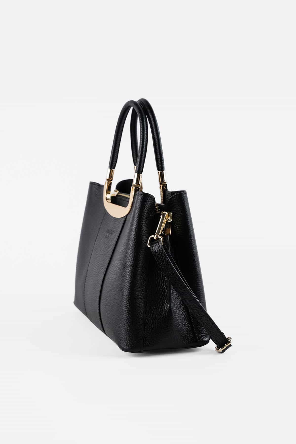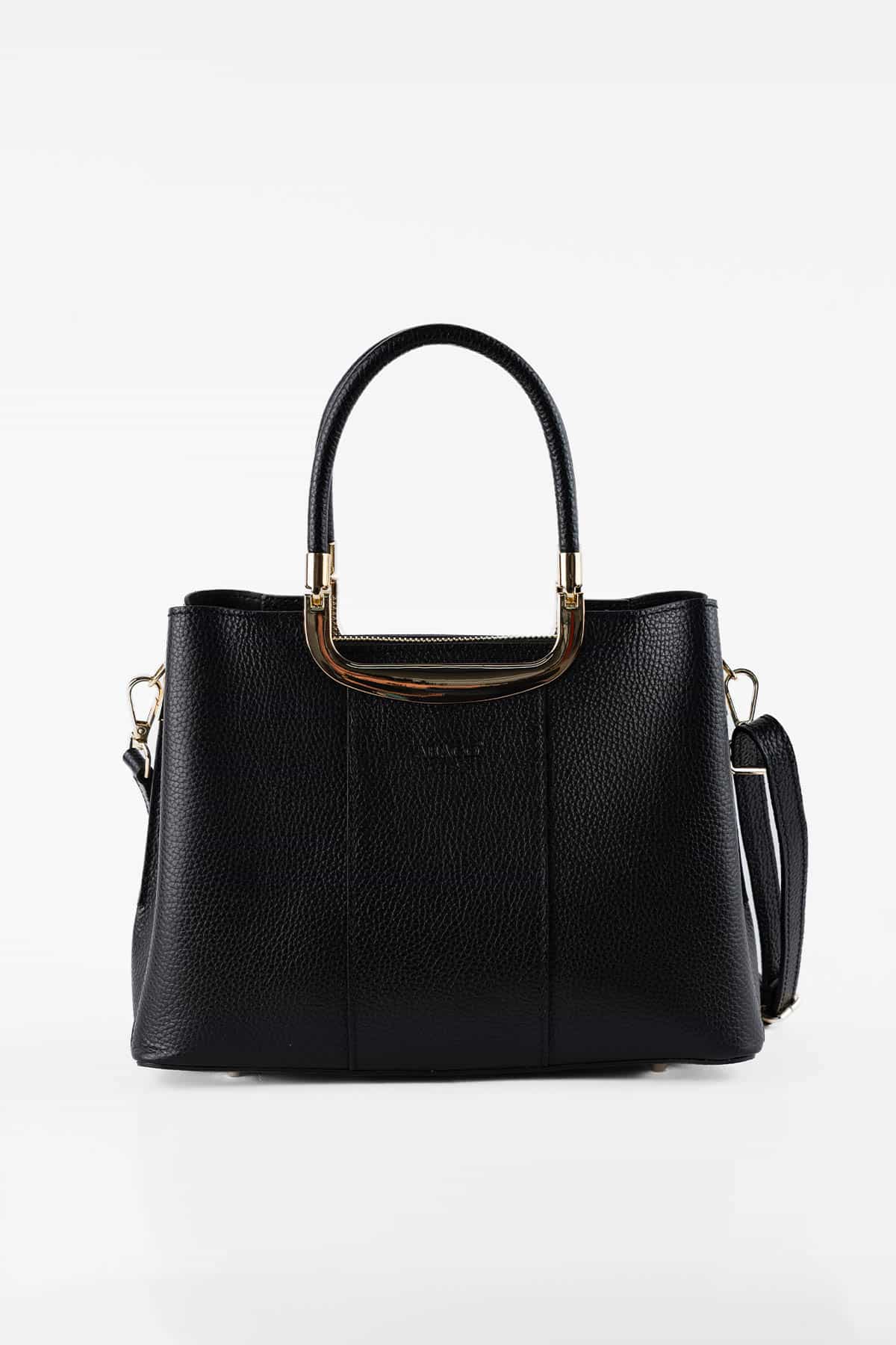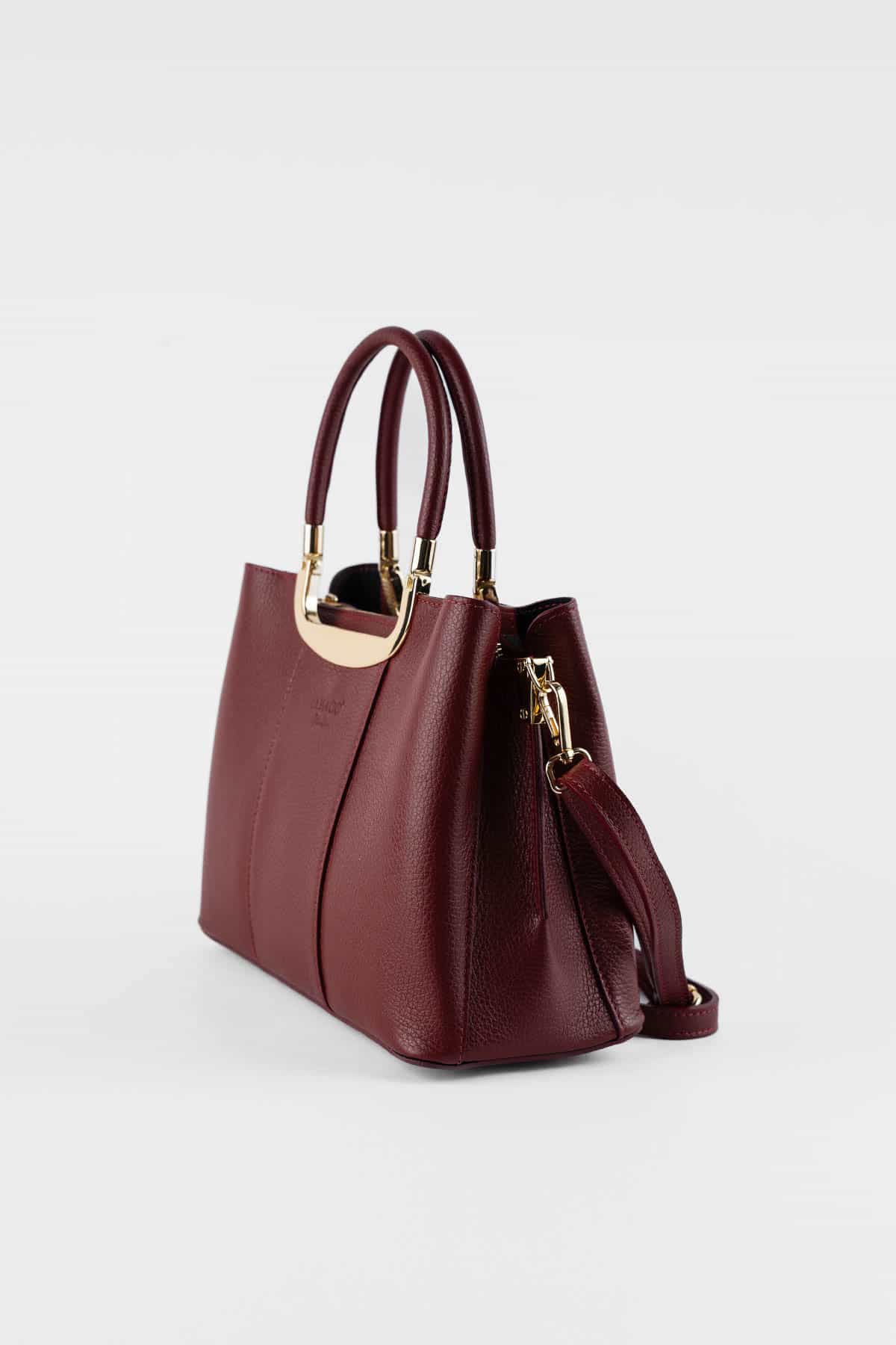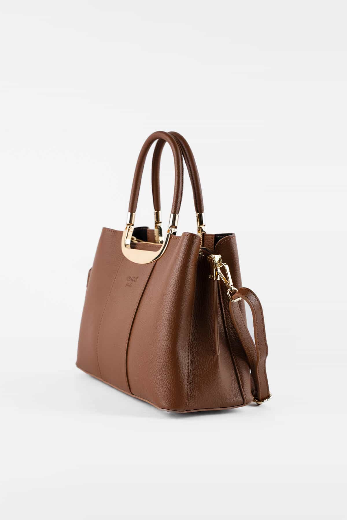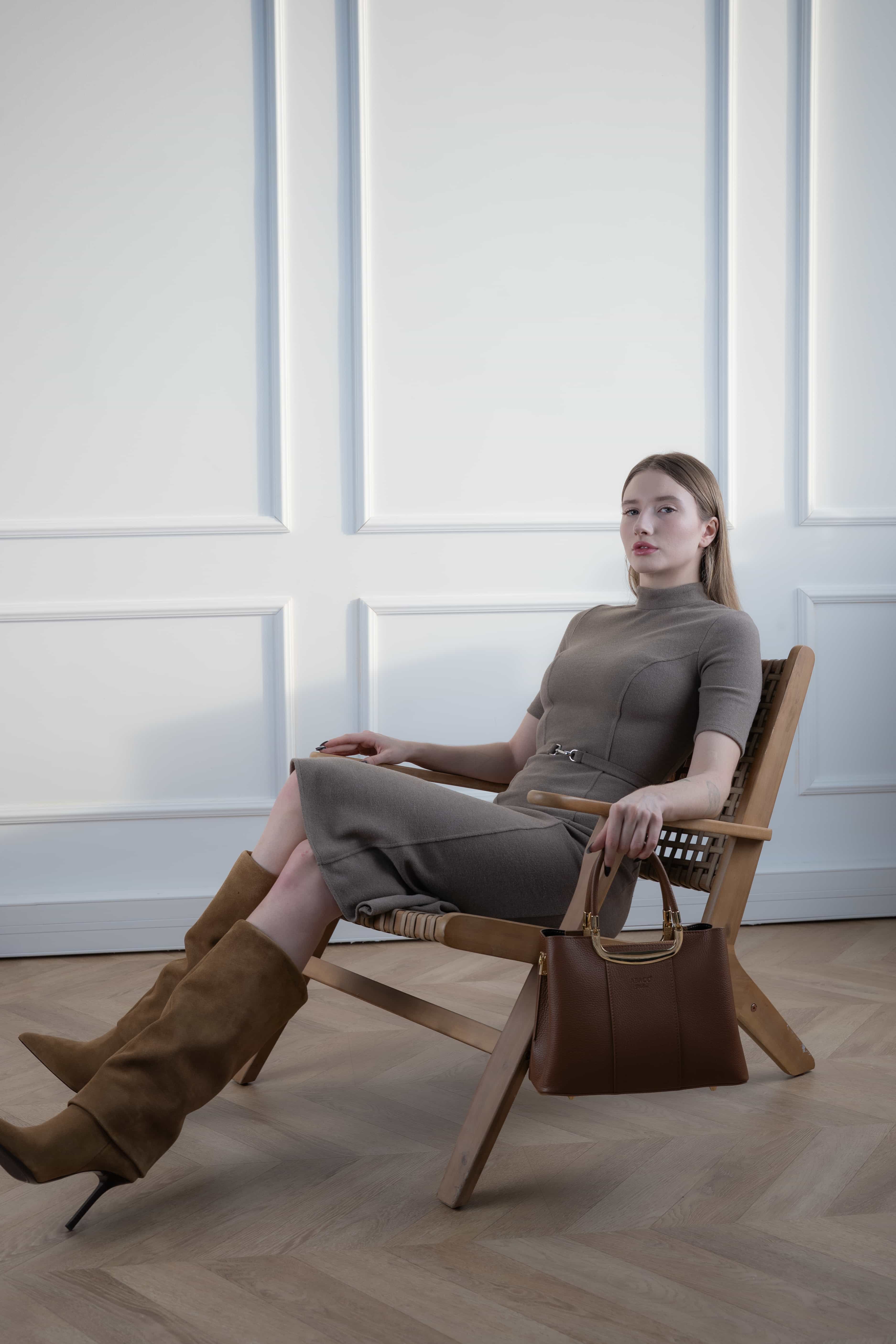 Le sac Olivia est un petit bijou de sophistication : une silhouette structurée en cuir de vachette, sublimée par une anse rigide ornée de métal doré façon bijou.