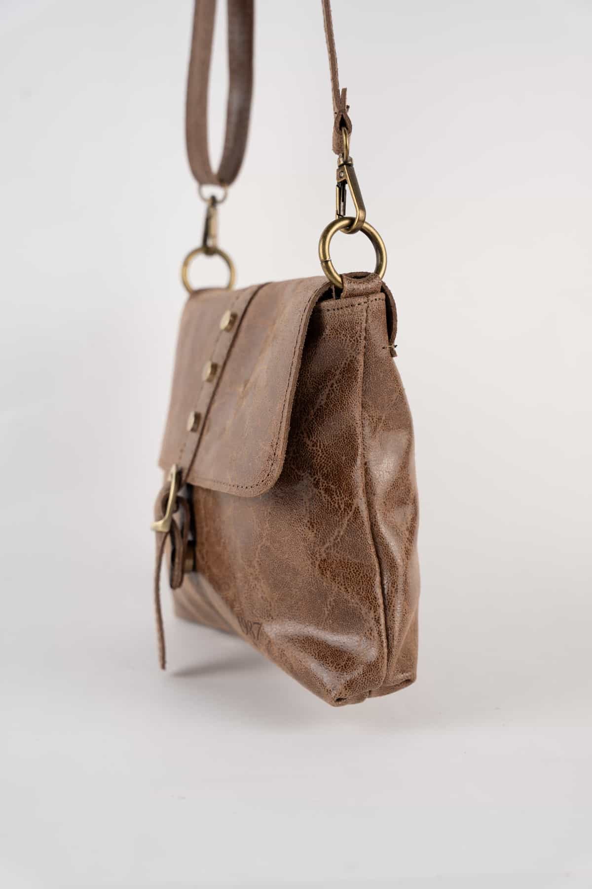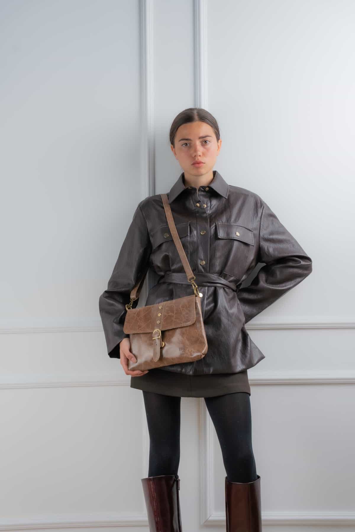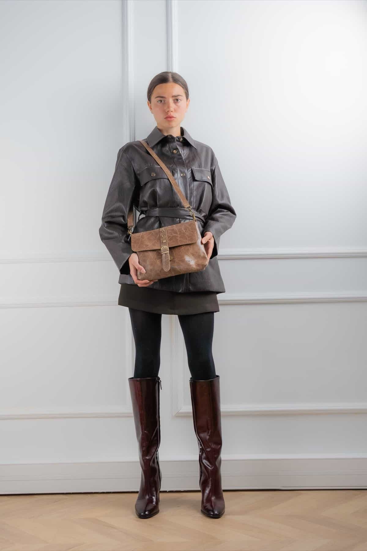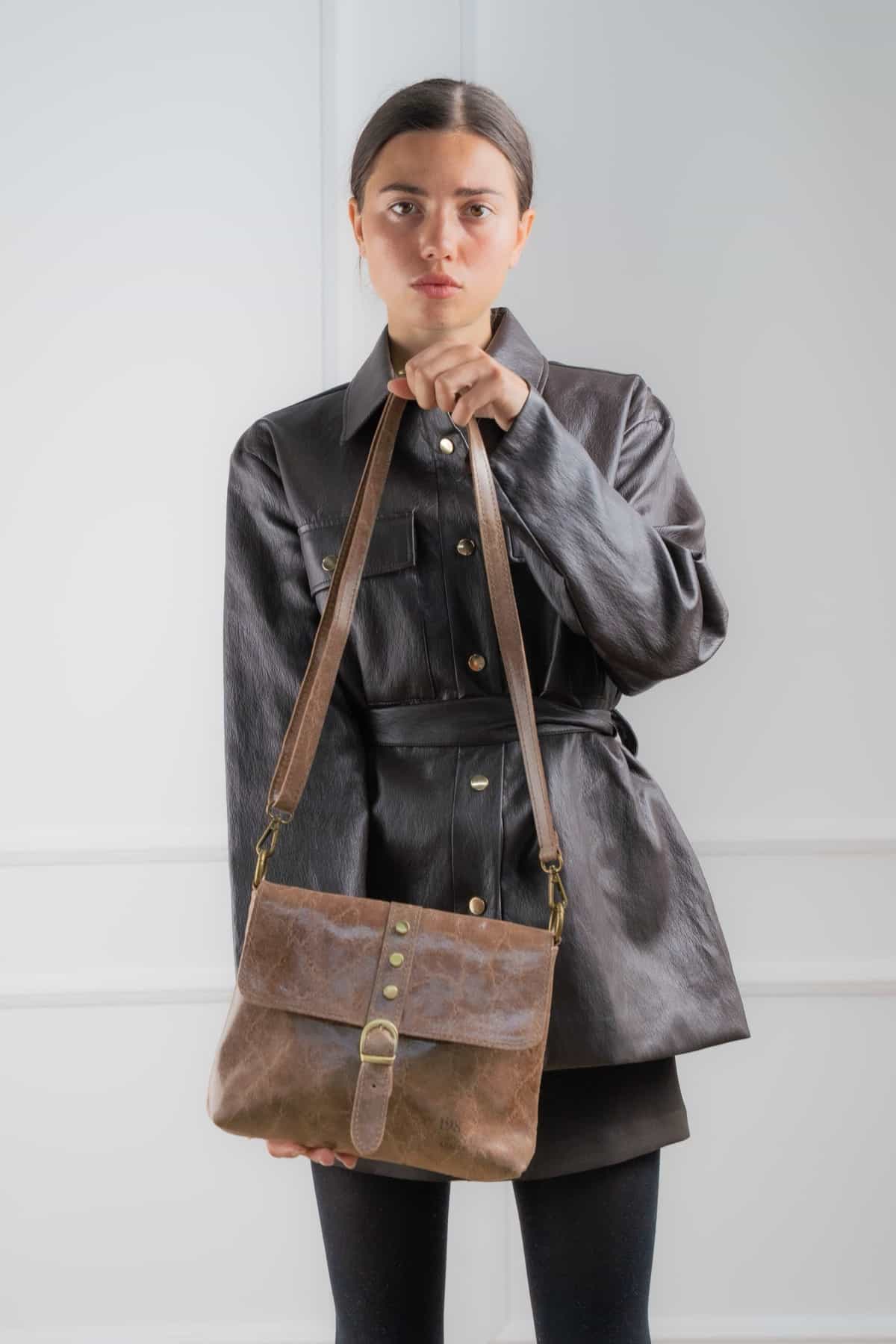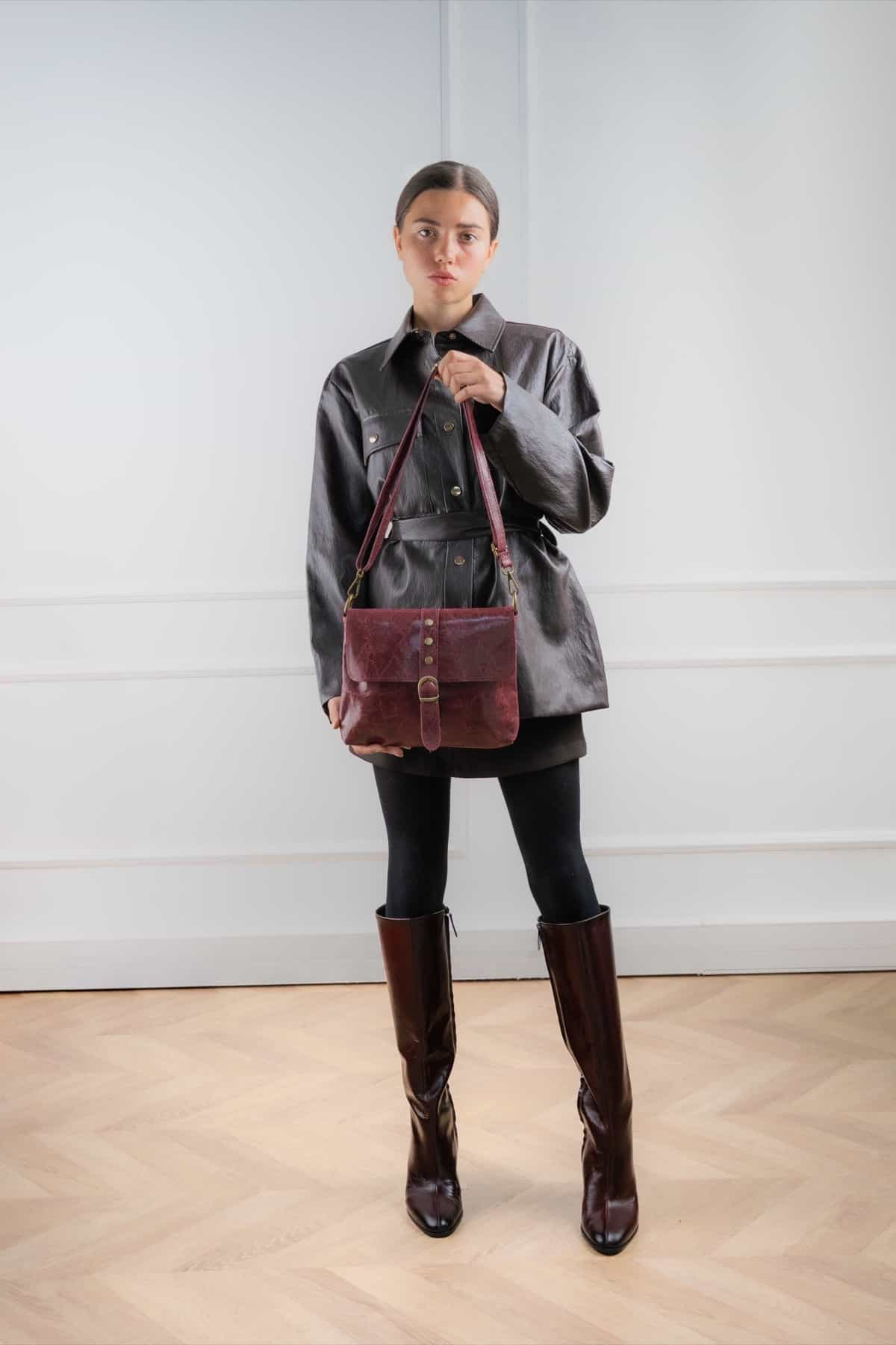 Le sac Otis est en cuir patiné au look vintage. Rabat aimanté avec rivets, fermeture zippée intérieure, poche doublée, bandoulière ajustable. Une pièce de caractère au style authentique.