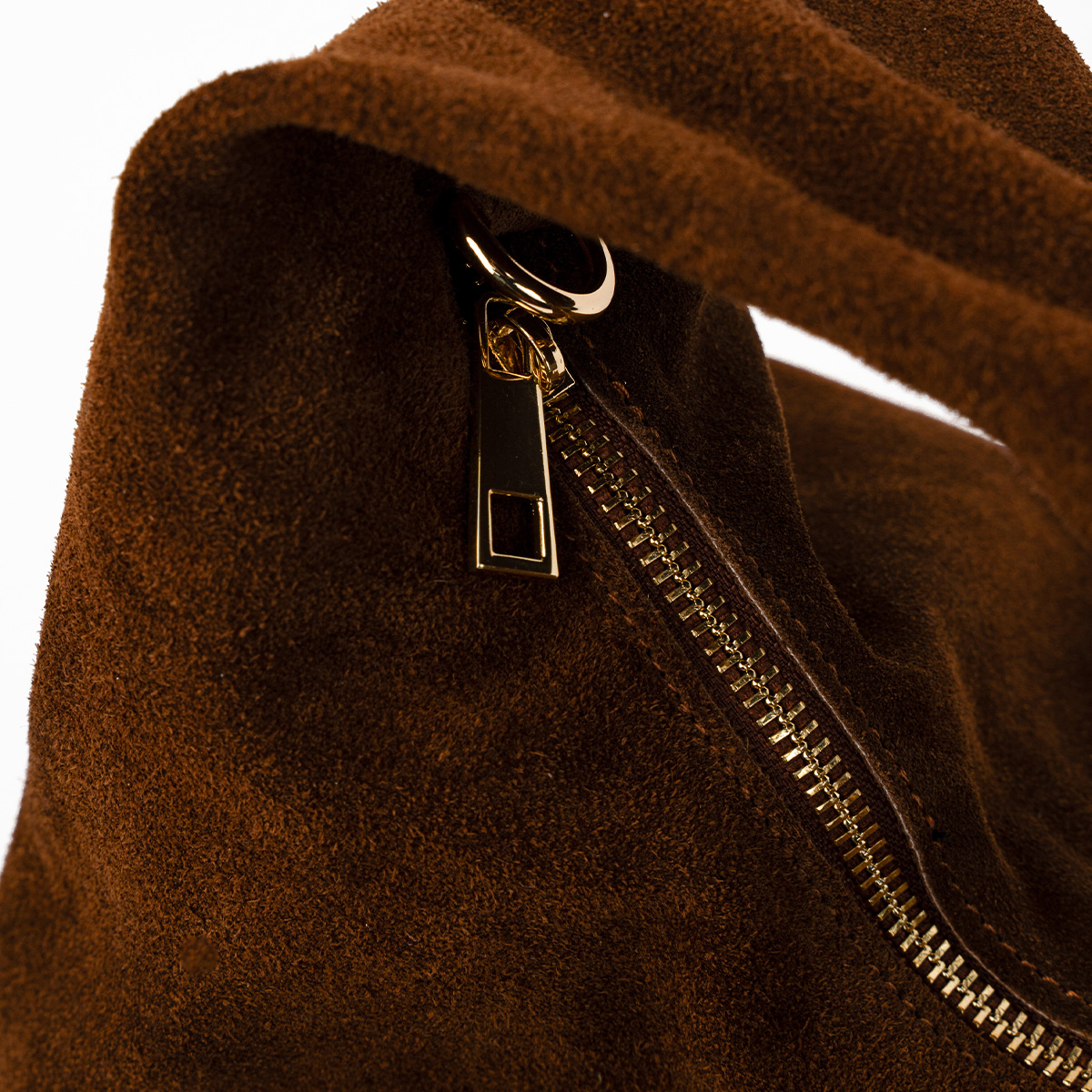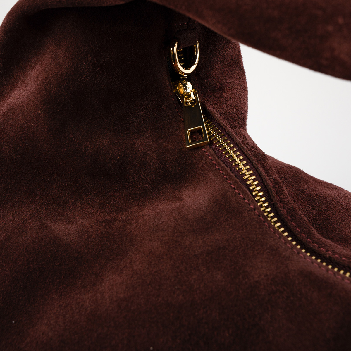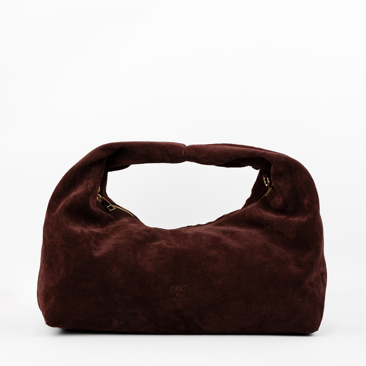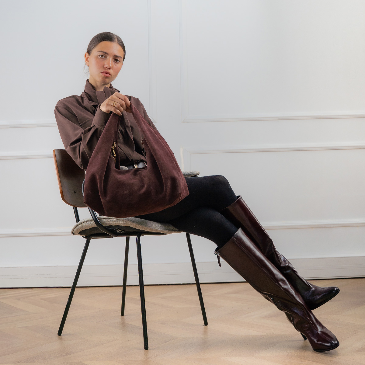 Confectionné en suédine pour un toucher doux et velouté, sa forme déstructurée lui confère une allure moderne et décontractée.