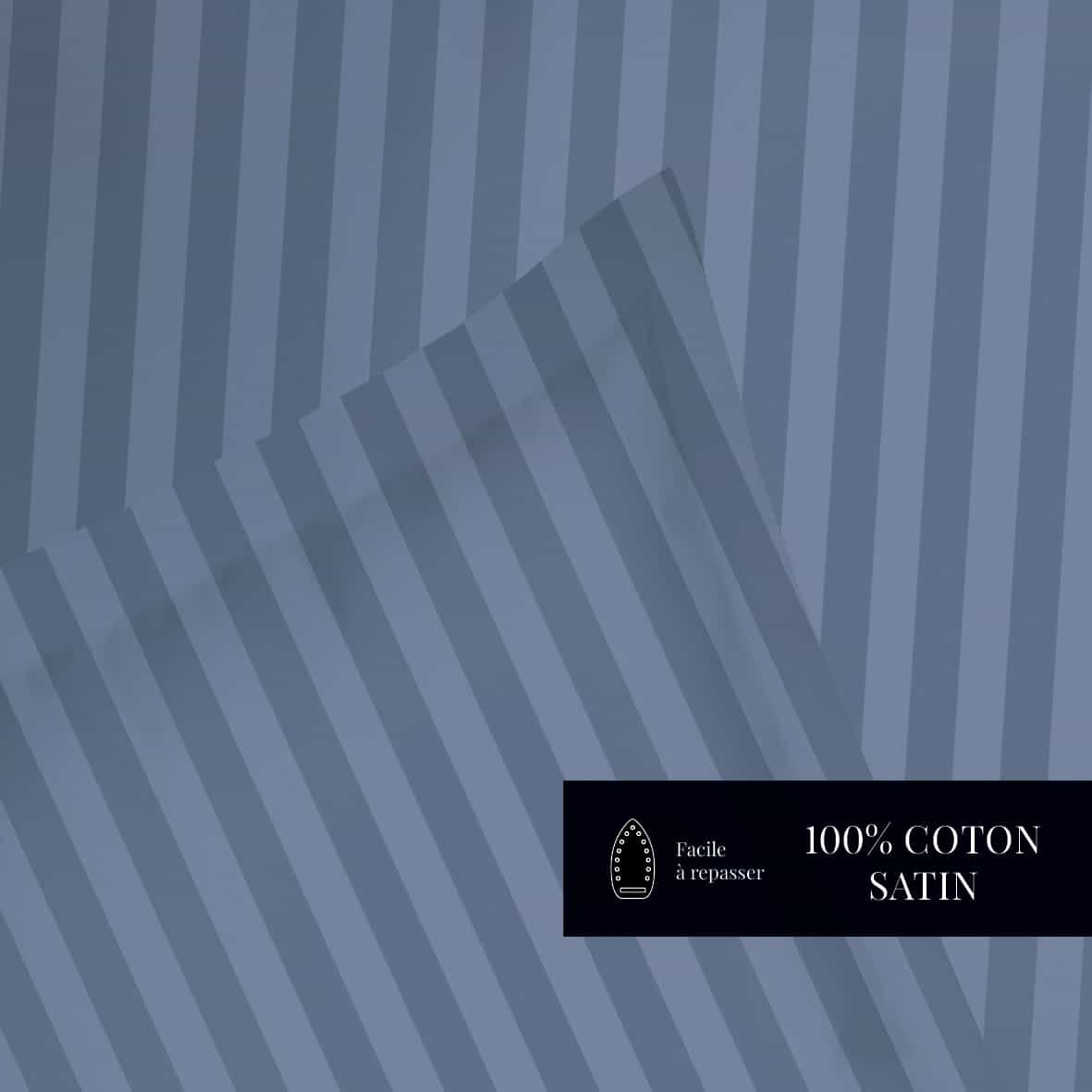 Set de 2 taies d’oreiller satin de coton rayure tissé dobby – Bleu 06 – 2 x (50 x 70 cm)