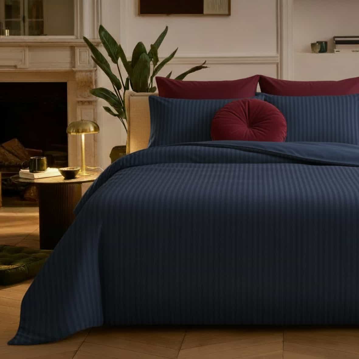 Set de 2 taies d’oreiller satin de coton rayure tissé dobby – Bleu 11 – 2 x (80 x 80 cm)