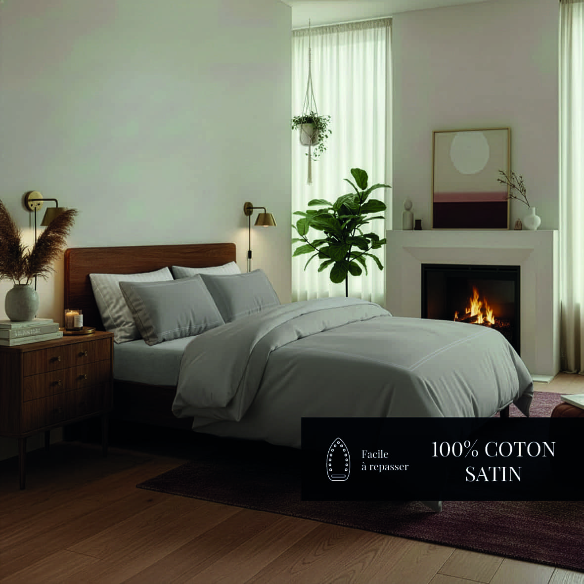 – Satin de coton haut de gamme : toucher soyeux, éclat subtil et grande douceur au quotidien