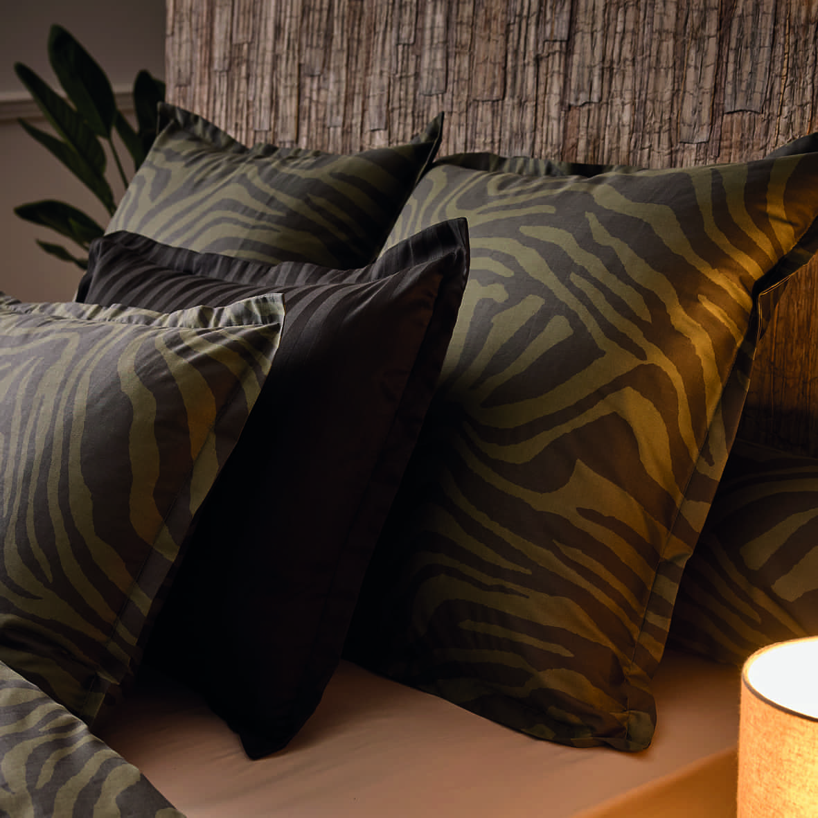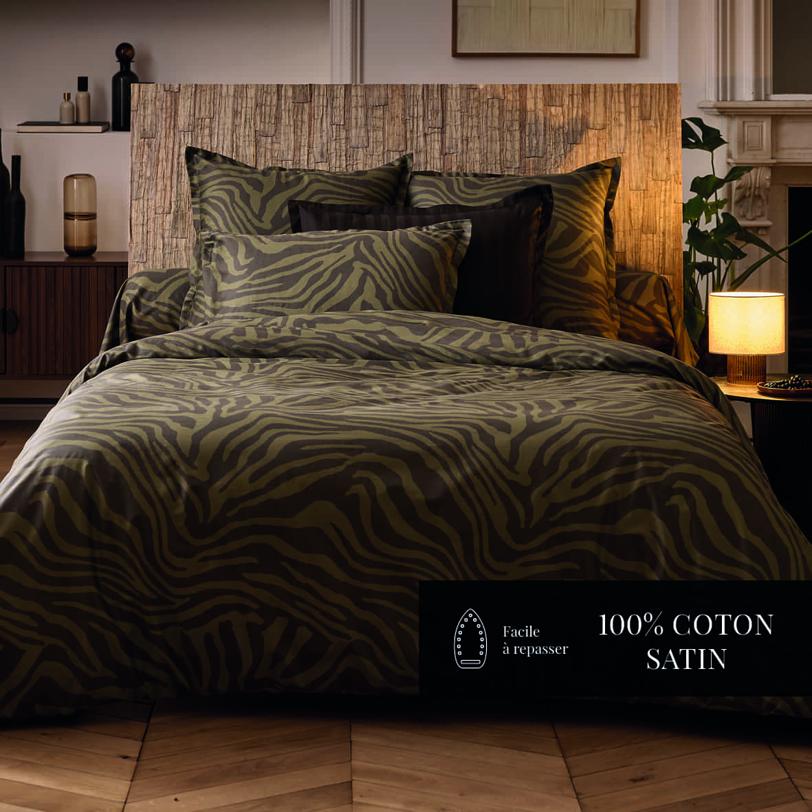 Taie d’oreiller satin de coton Evasion zébrée Vert foncé – 30 x 50 cm